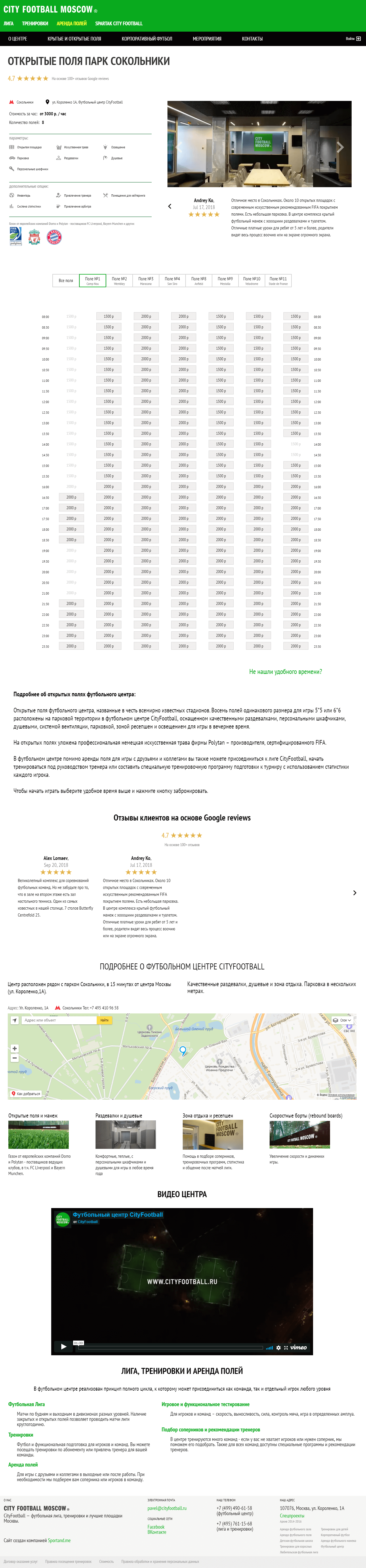 Процесс для клиента предельно прост: он заходит на сайт, где открываются карточки площадок с указанием адреса и ближайшей станции метро, инфраструктуры, средней актуальной оценки на основе Google Reviews, цены. Здесь же - кнопка “Забронировать”, при нажатии на которую открывается календарь с временными слотами для бронирования. Остается лишь выбрать удобное время для бронирования и в два клика оплатить заказ.