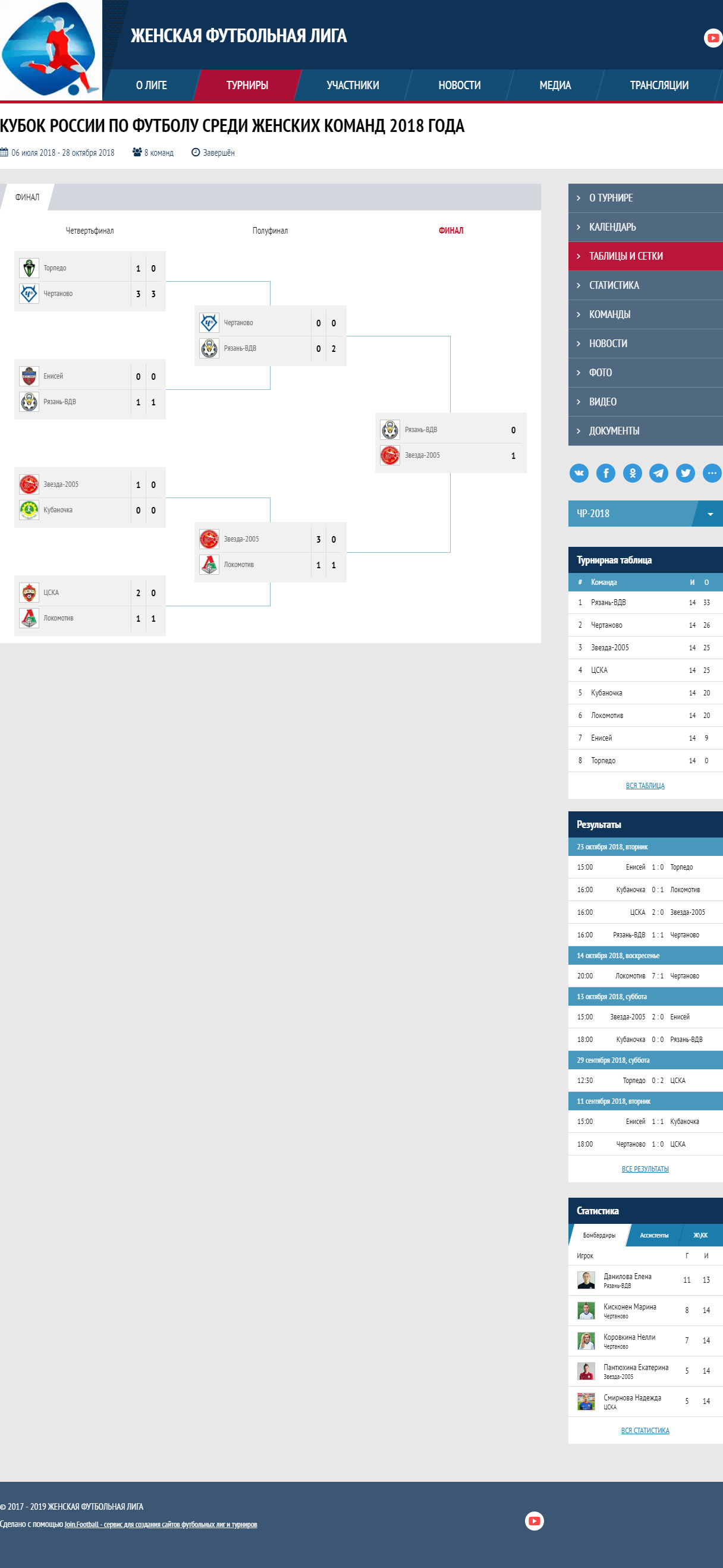 - Профили команд-участниц турнира, футболисток, представителей команд и судей